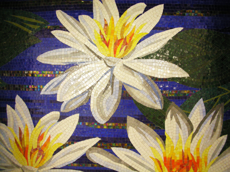 Mosaici artistici a tema floreale per i bagni privati delle cabine: una vera esplosione di colore!